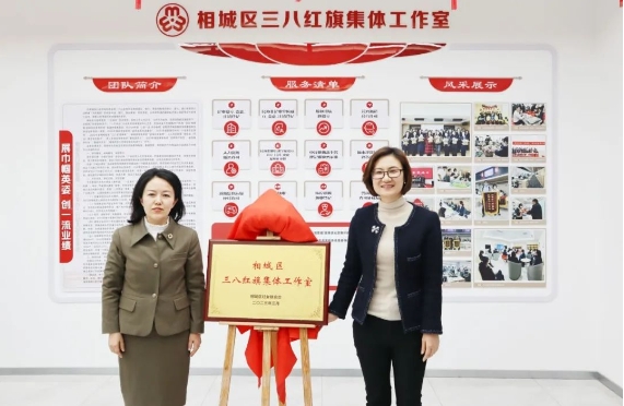 现场举行了相城区首家省级三八红旗集体工作室揭牌仪式,孙月霞、矫雯共同揭牌。